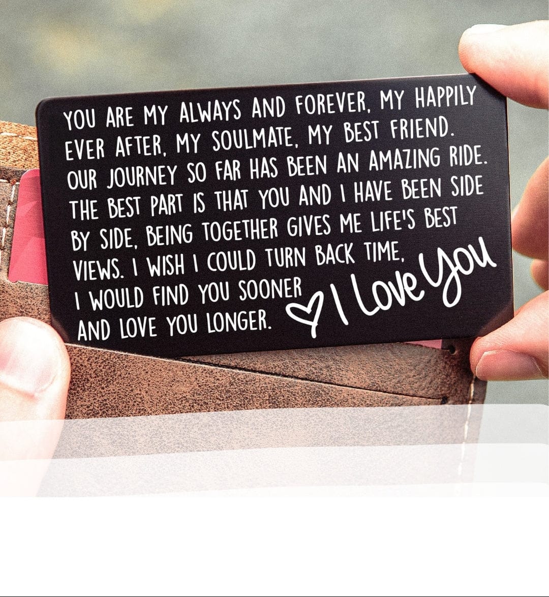 I absolutely love this photo wallet card. The engraving is beautiful and so detailed, and the message on the back came out perfectly. It feels really high quality and arrived nicely packaged with a personal touch. It made such a meaningful gift for my partner. Would definitely recommend!